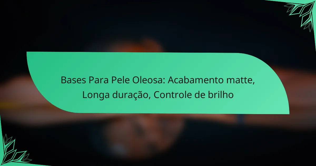 As bases para pele oleosa são essenciais para quem deseja um acabamento matte e controle de brilho, proporcionando uma aparência fresca e saudável. Ao escolher a base ideal, é importante considerar produtos que garantam longa duração e eficácia no combate ao excesso de oleosidade ao longo do dia.