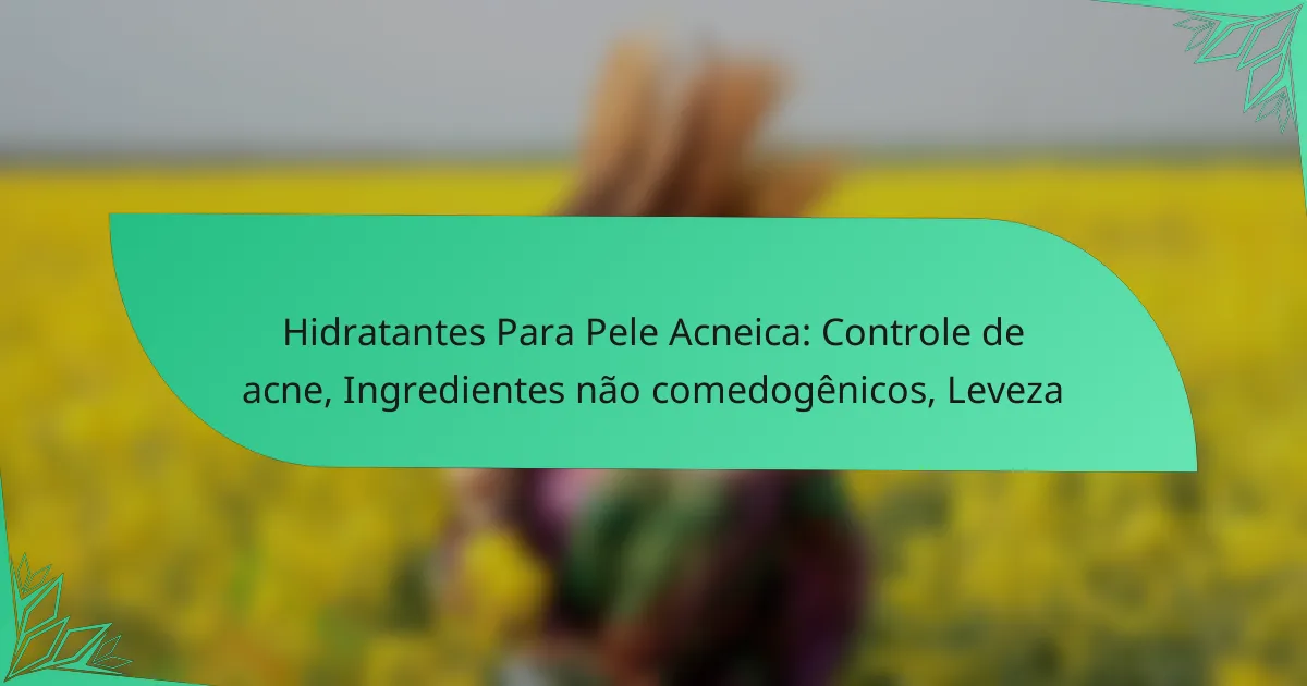 Ao avaliar hidratantes para pele acneica, considere a composição dos ingredientes, priorizando aqueles que são não comedogênicos e livres de óleos pesados. A textura do produto também é crucial; opções em gel ou loção são geralmente mais adequadas para evitar a sensação de peso na pele.