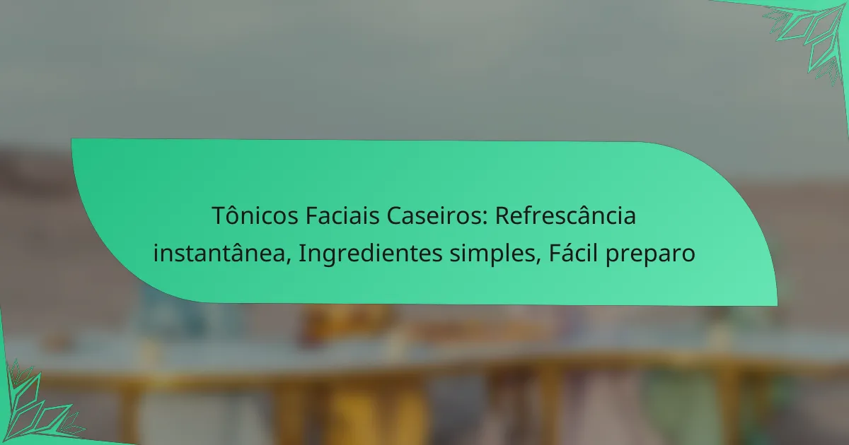 Um bom tônico facial caseiro possui propriedades refrescantes que ajudam a revigorar a pele cansada. Ingredientes como pepino ou hortelã não só proporcionam uma sensação de frescor, mas também podem acalmar a pele irritada. Usar um tônico gelado pode intensificar essa sensação de renovação.
